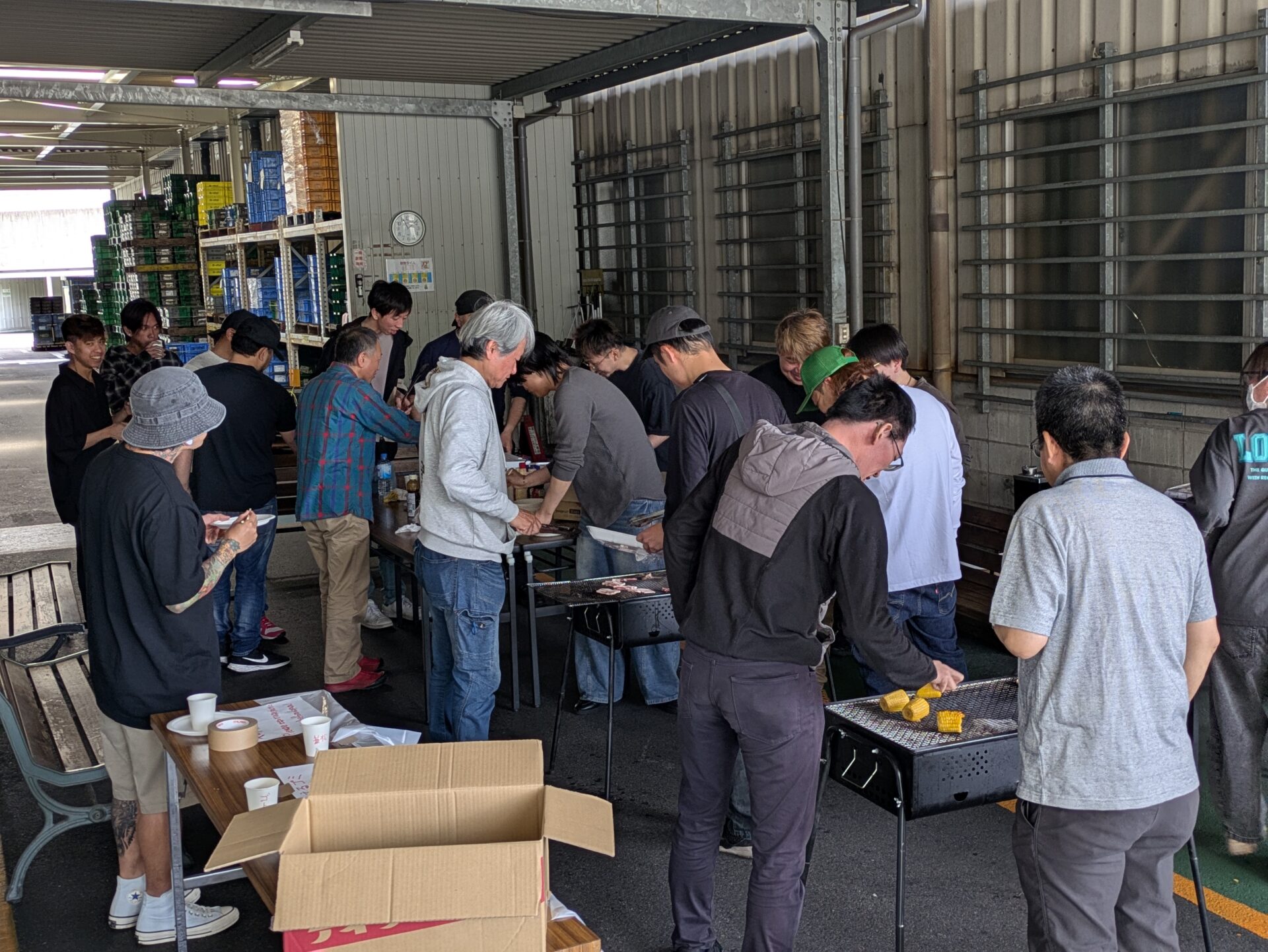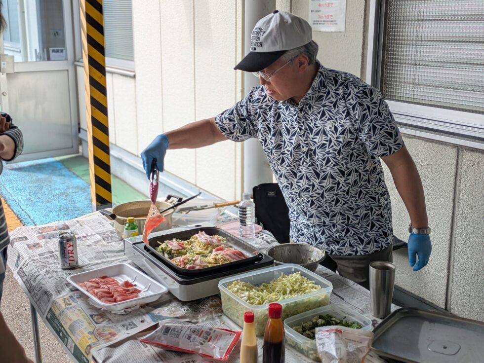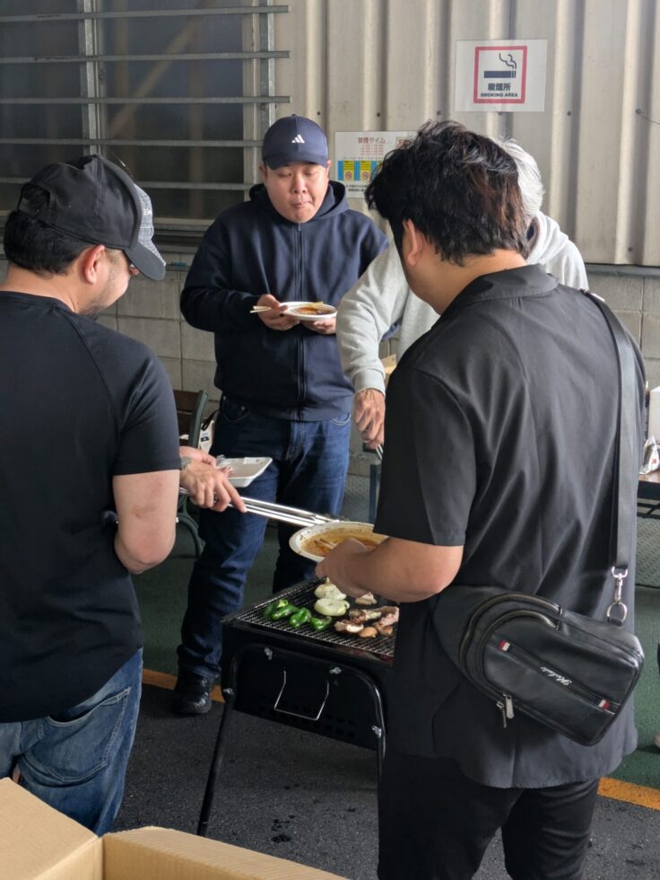 会場では、お肉や野菜、焼きそばなどたくさんの料理が並び、社員みんなで準備から協力しながら楽しくスタートしました。